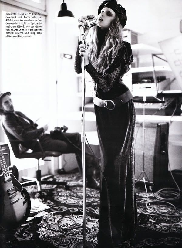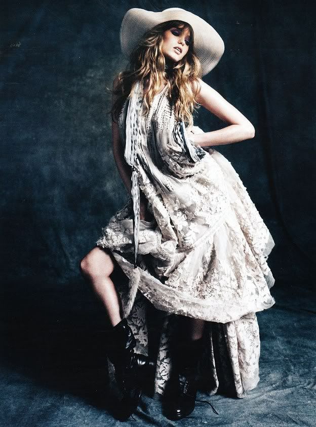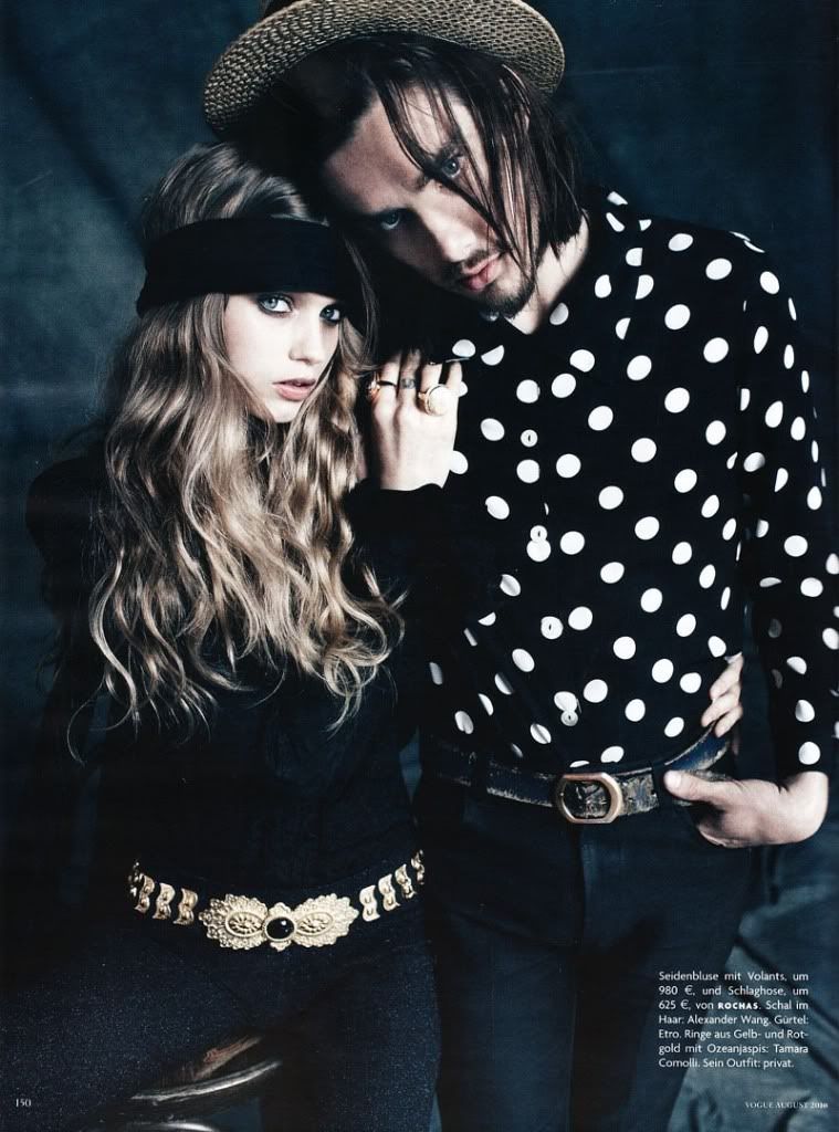 Abbey Lee Kershaw for German Vogue - August 2010 by Alexi Lubomirski. I know this is an old editorial and has probably already been posted on thousands of fashion blogs across the globe because I know how many people adore Abbey Lee, but I only discovered it last night and just had to share it with those who haven't yet seen it. One of the most 60's/70's looking models in a 60's/70's style shoot with her modern Keith Richards boyfriend dressed in tassels, flowing satin, floppy hats and fur. How could I possibly not have seen this before?! Everything about this shoot is amazing, it's almost like the photos of Mick & Marianne in their London apartment taken by some roadie who just happened to be there and see these beautiful people draped in beautiful clothes and felt he had to share it with the world. I shall definitely be plastering this all over my walls.