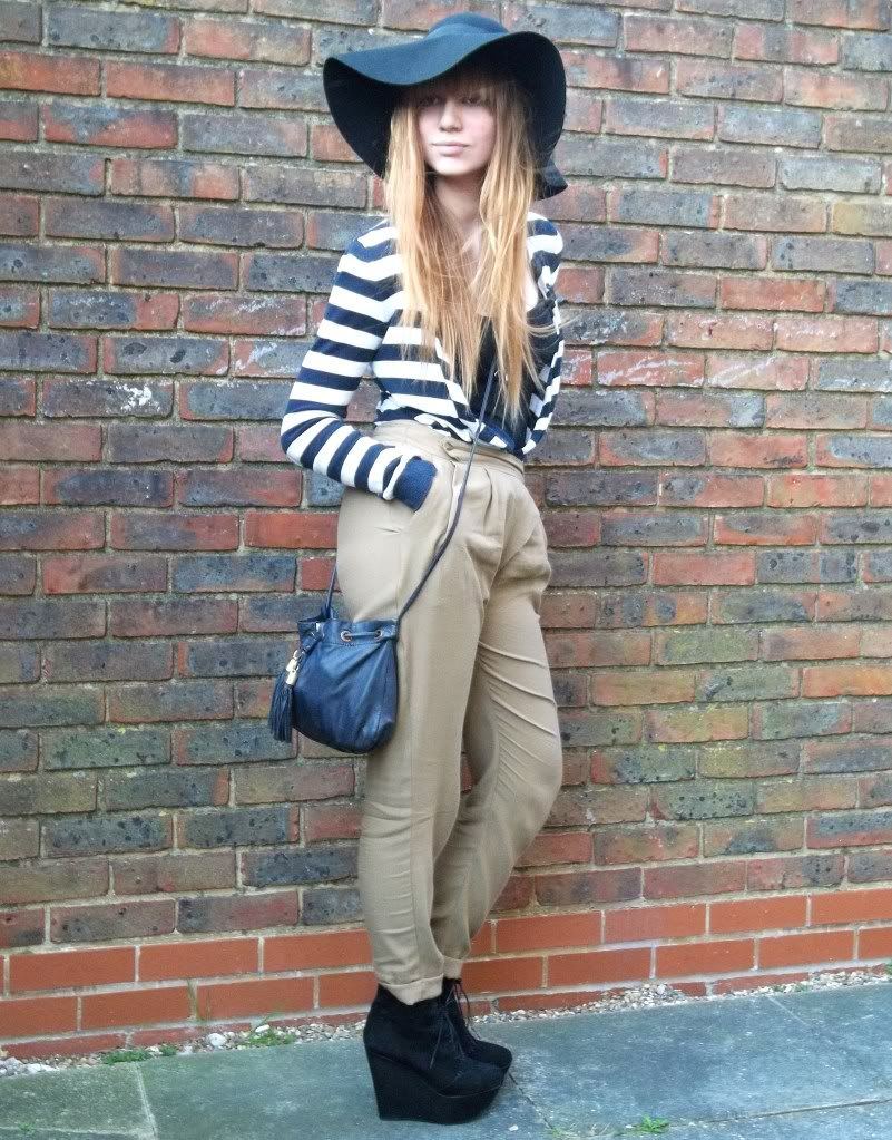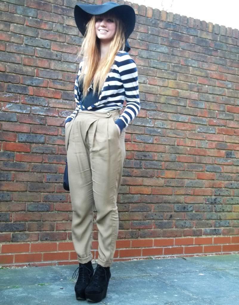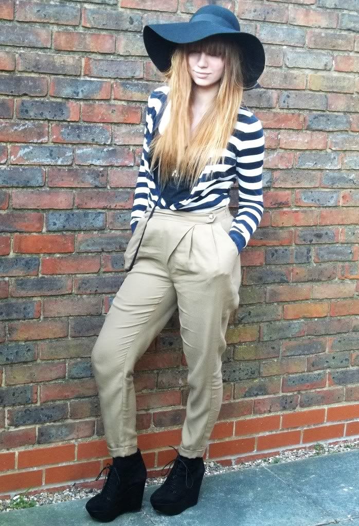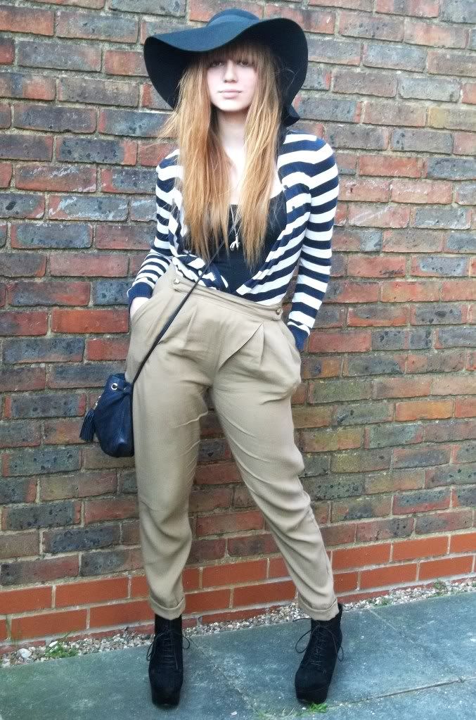 Shoes - Topshop. Trousers - Topshop. Cardigan (very old) Topshop. Bag - Topshop. Hat - H&M.
