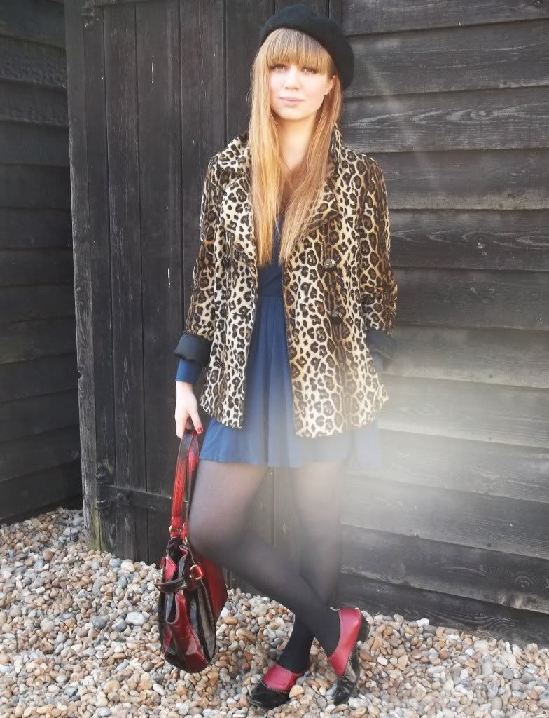 Outfit; Skater Dress - Topshop. Leopard Jacket - ASOS. Shoes - Vintage. Bag - Topshop. Beret - Acessorize.
